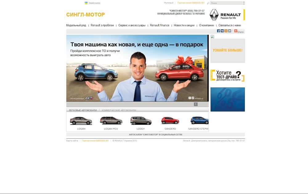 АвтосалоныАвтосалон Renault на Украине в ДнепропетровскеУкраина - ВинницаСингл (Single) – представитель и официальный дилер Renault assistance предлагает гарантийное и сервисное обслуживание, скидки на новый автомобиль Рено Symbol, Clio 3, Megan, Scenic, Laguna, Kangoo, Kangoo Express, Символ, Меган, Кенгу и др.