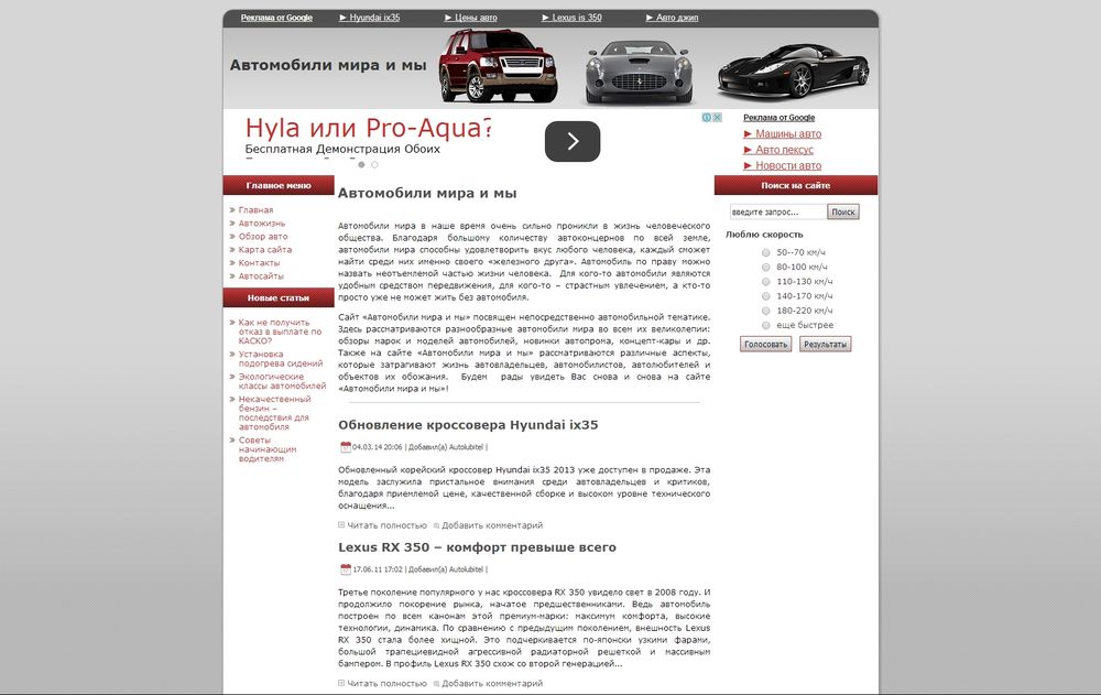 Авто, мото услугиЛегковые автомобили, любители авто и автомобильная жизньРоссия - АбаканСайт "Авто мира, мы и жизнь колесная" повествует о различных марках авто. А также на сайте размещается другая информация затрагивающая тематику человек и авто. Этот ресурс будет полезен людям, обожающим машины и все, что с ними связано. Каждый человек найдет на этом сайте полезную информацию. Также на сайте ведется обзор новых моделей авто.