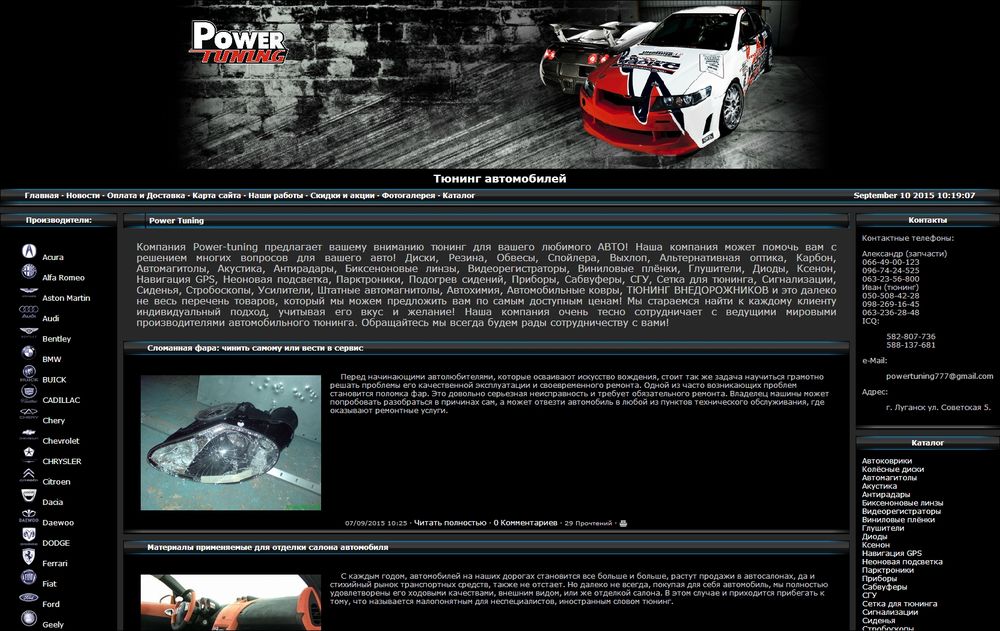 ТюнингТюнинг&АвтозвукУкраина - ЛуганскЭкслюзивные автомобильные диски, резина, обвесы, спойлера, альтернативная оптика, карбоновые и виниловые плёнки, выхлоп, решетки радиатора, дуги, автомагнитолы, акустика, сабвуферы, сигнализации, парктроники, ксенон, антирадары, приборы и многое другое!